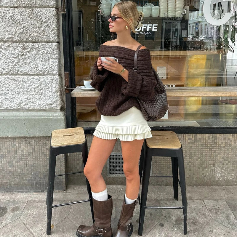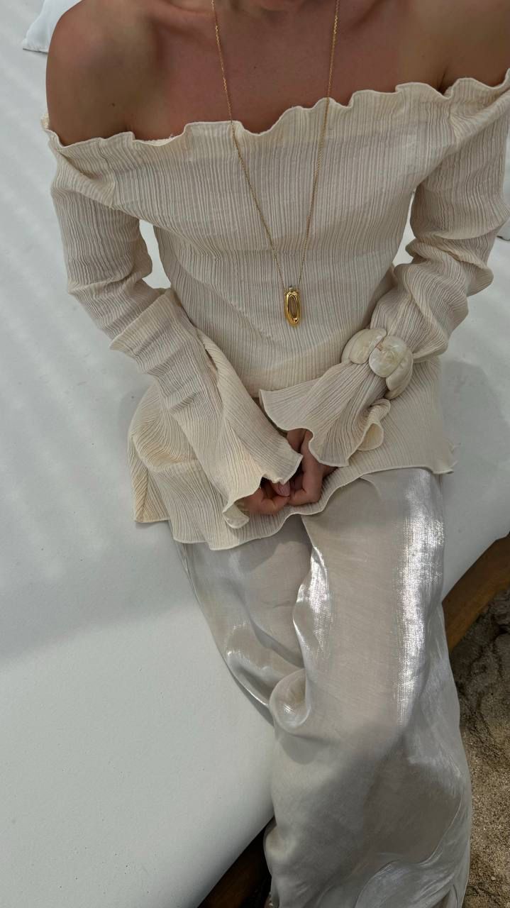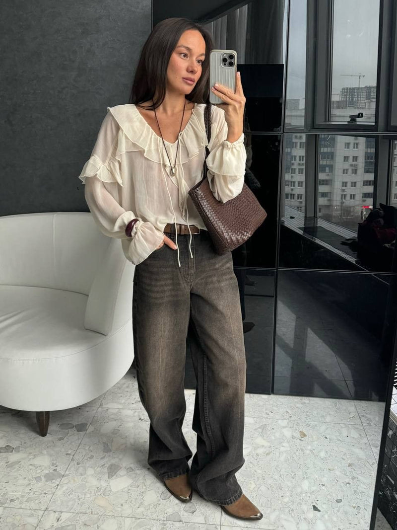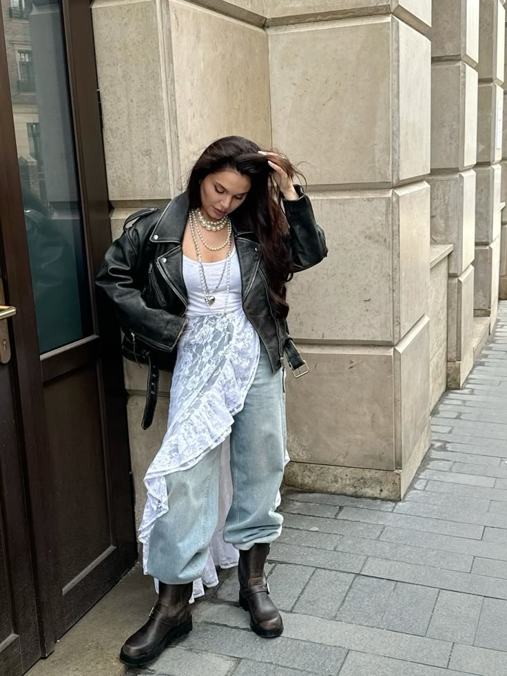 Bohemian style reaches its peak in 2025, now reimagined for autumn. Flowing fabrics, light layers, and romantic textures take center stage, but with a seasonal twist. Ruffles, airy blouses, and lace appear in deeper, richer tones, while the fabrics themselves seem to glide and shimmer with every movement. This dreamy, multi-layered aesthetic captures the spirit of freedom — only this time wrapped in the warmth and elegance of fall.