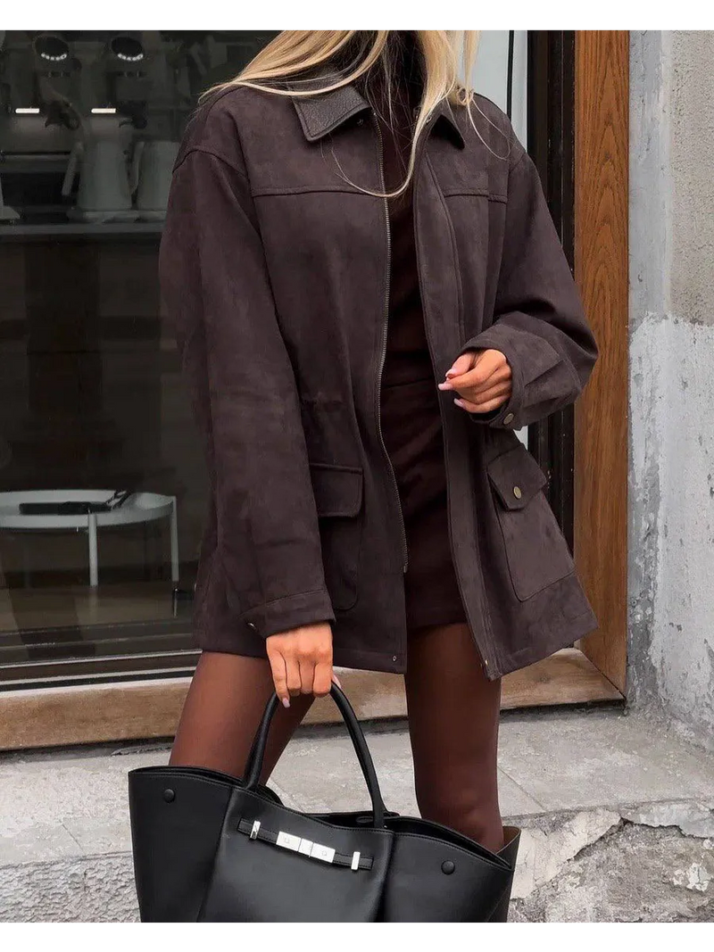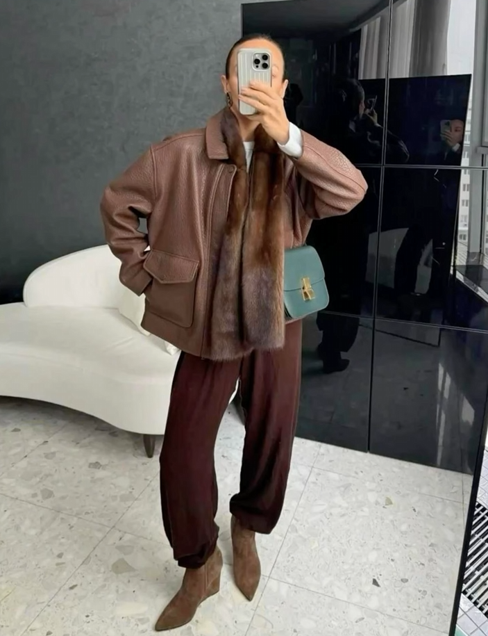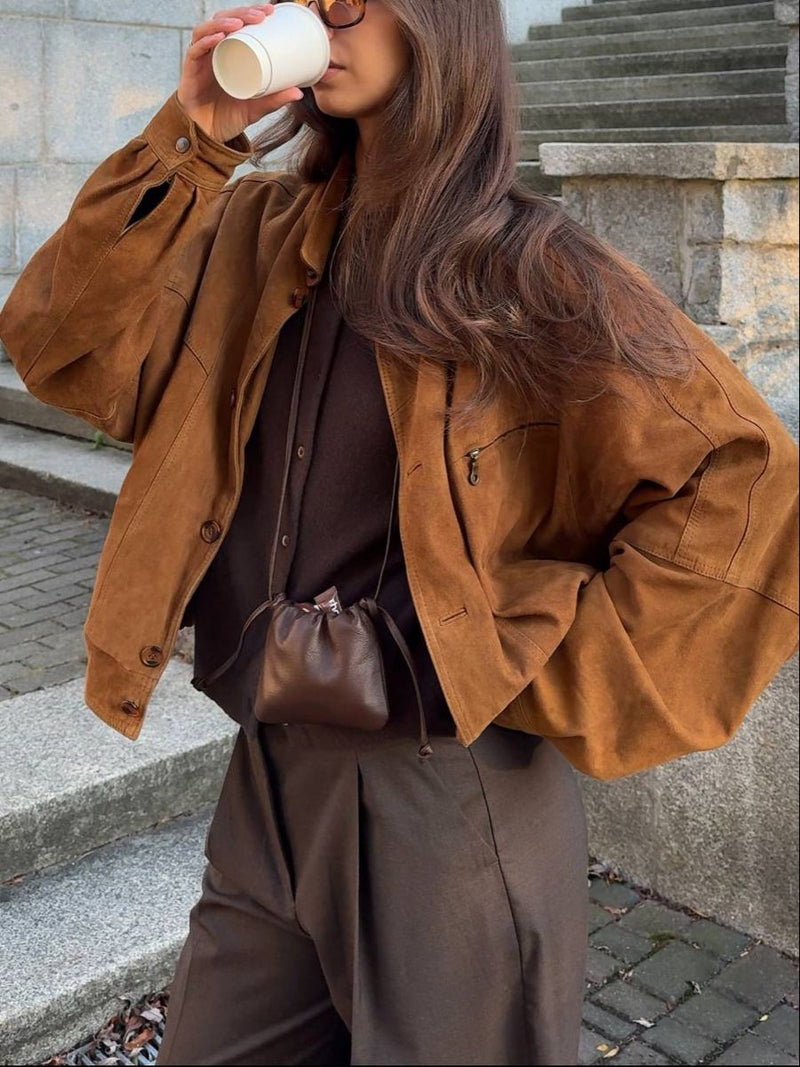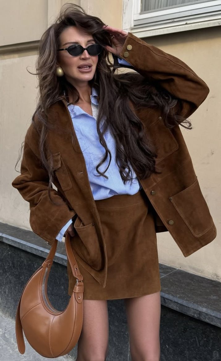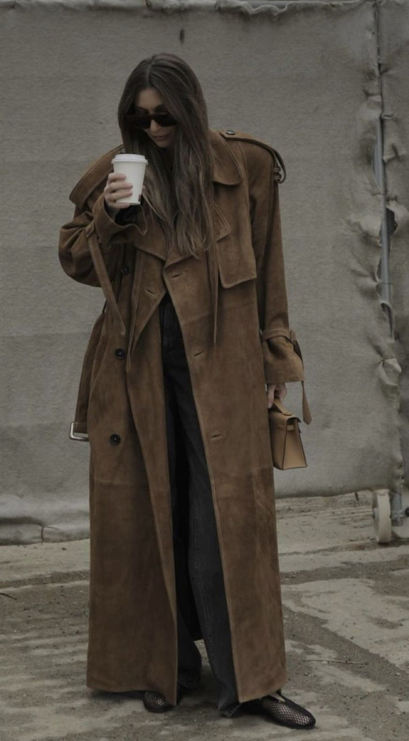 Suede remains one of the most versatile choices, lending warmth and sophistication to any look. From jackets and trench coats to bombers and loafers, it adds a tactile depth that instantly softens structured outfits.