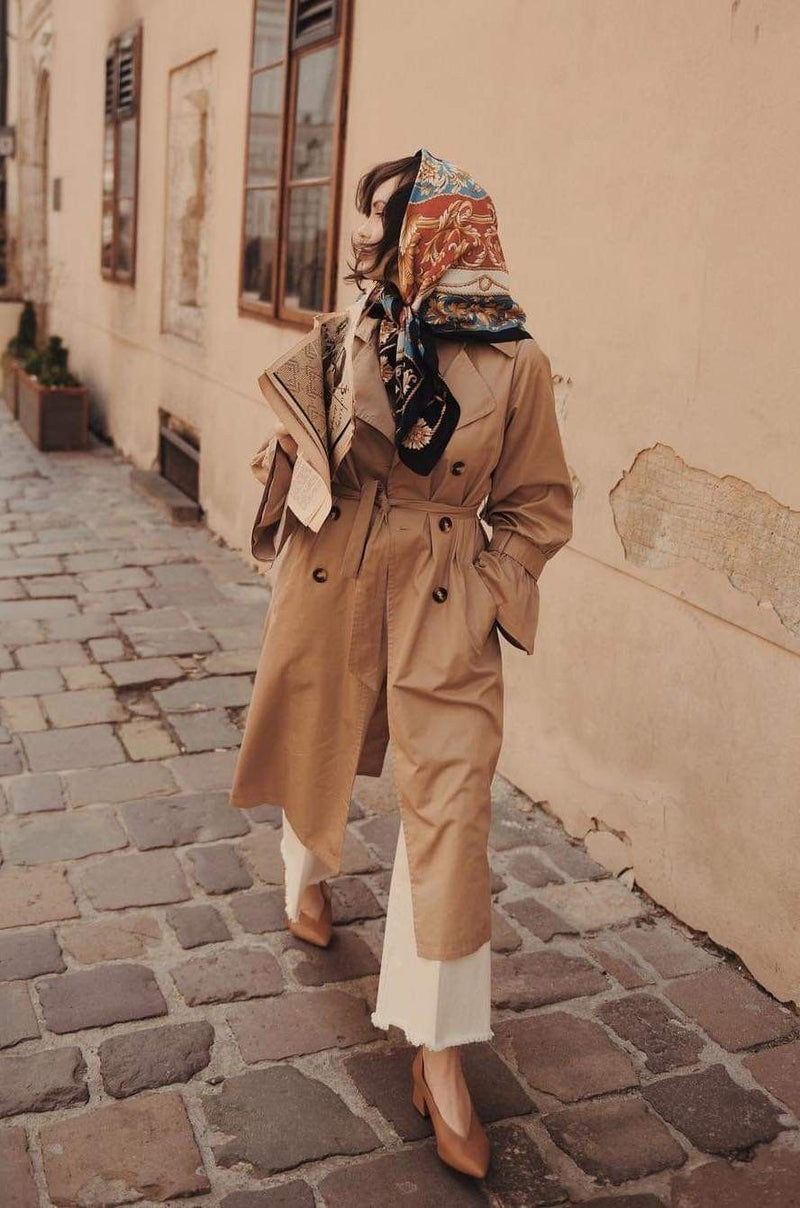 Scarves take on new relevance, often tied with a small knot in the front and chosen in fine fabrics to complement outerwear.