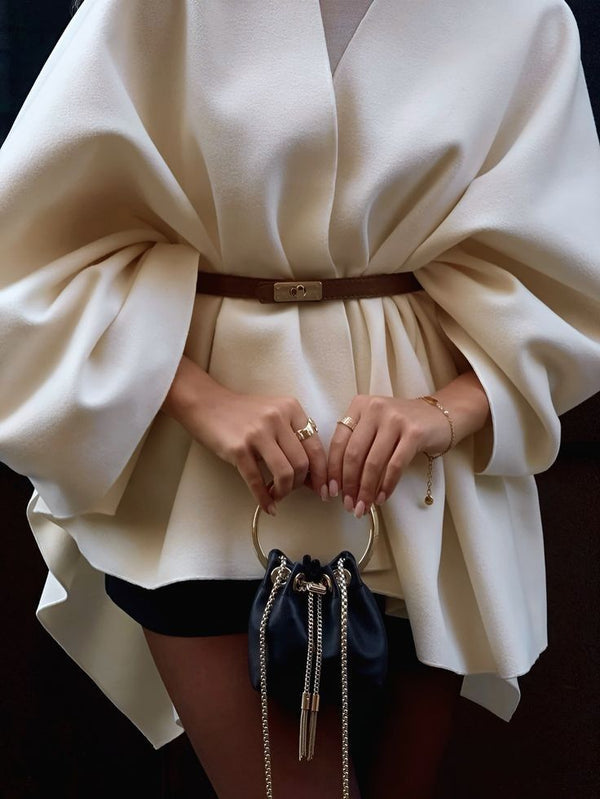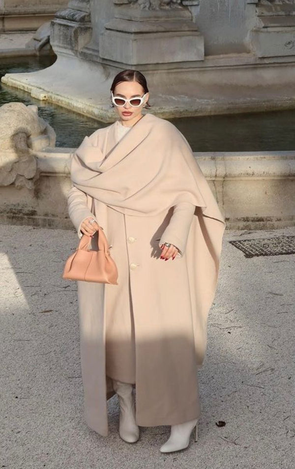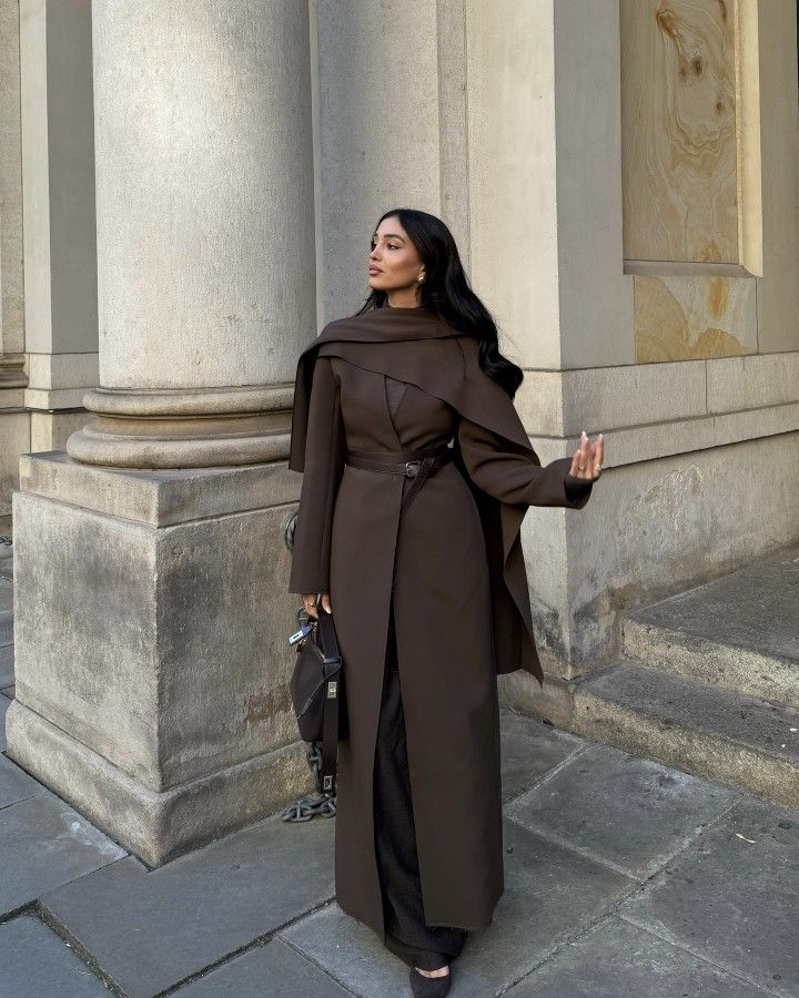 This season, outerwear takes on a dramatic flair with palantines and cape-like drapes. These pieces add movement and sophistication, transforming a simple coat into a statement look. Whether worn over tailored outfits or layered with casual wear, draped details bring elegance and a sense of individuality.