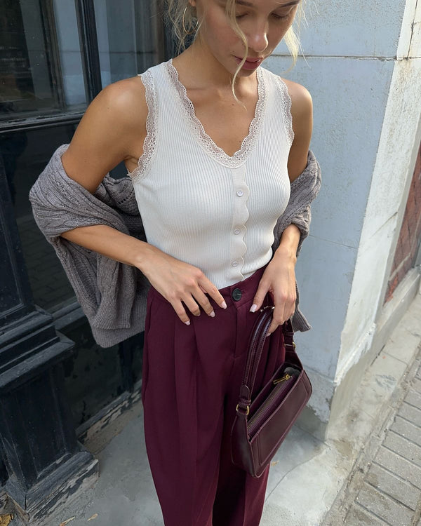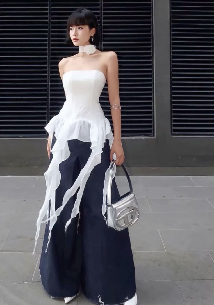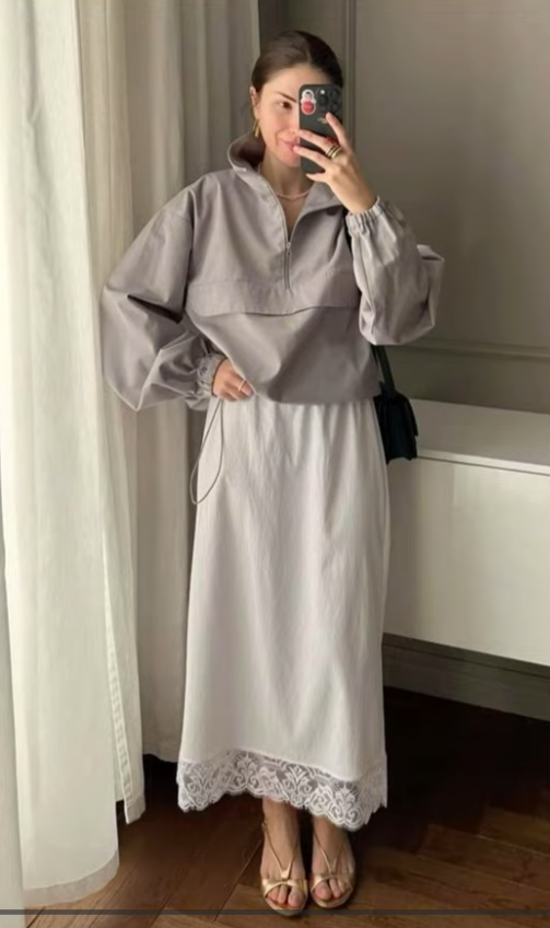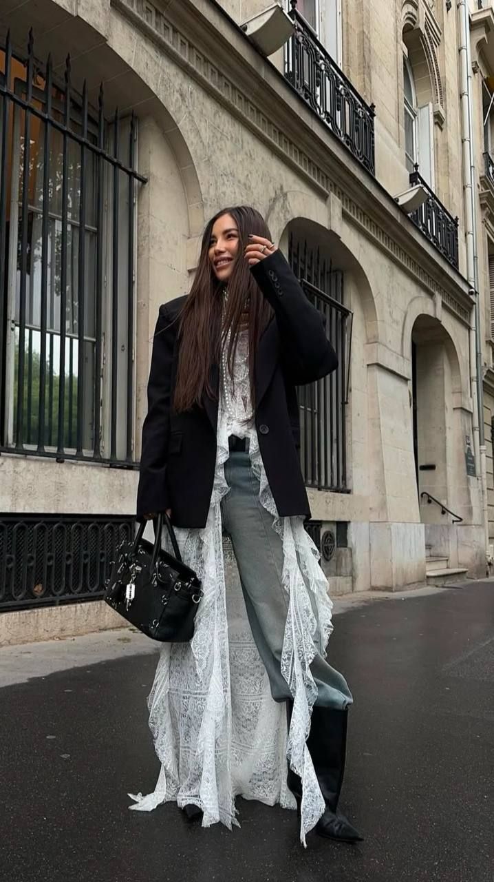 Lace and ruffles refuse to step aside this season. Instead, they become a delicate finishing touch to layered outfits, softening the silhouette and adding a hint of nostalgia. Their versatility makes them especially striking when paired with classic pieces — from tailored blazers to structured skirts — creating a balance between romance and sophistication.