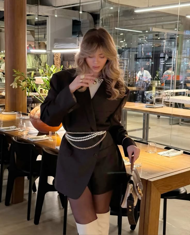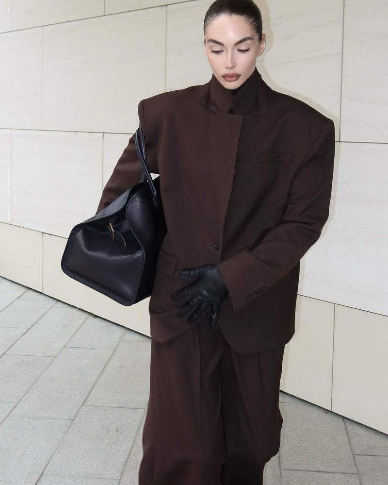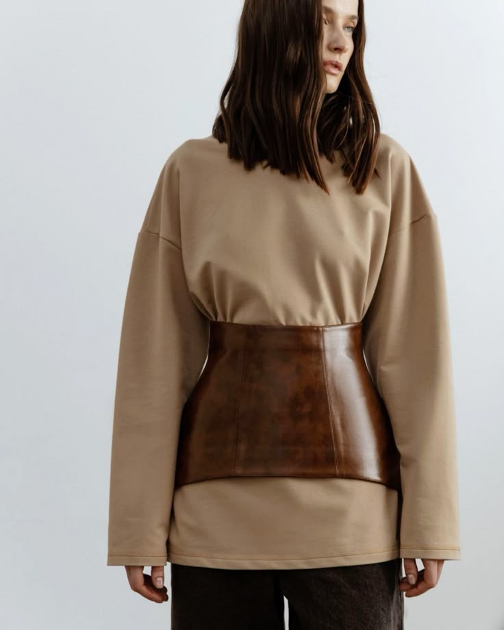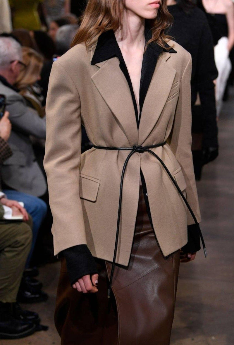 Following the trend of statement belts, the focus on the waistline continues. A feminine silhouette remains important this fall. Blazers, vests, and long-sleeve tops come with a narrowed waistline, creating sharp proportions. Designers also introduce a “barrel” shape: fitted at the top and expanding toward the bottom. Even a simple long-sleeve worn untucked with jeans reflects this waist-emphasizing trend.