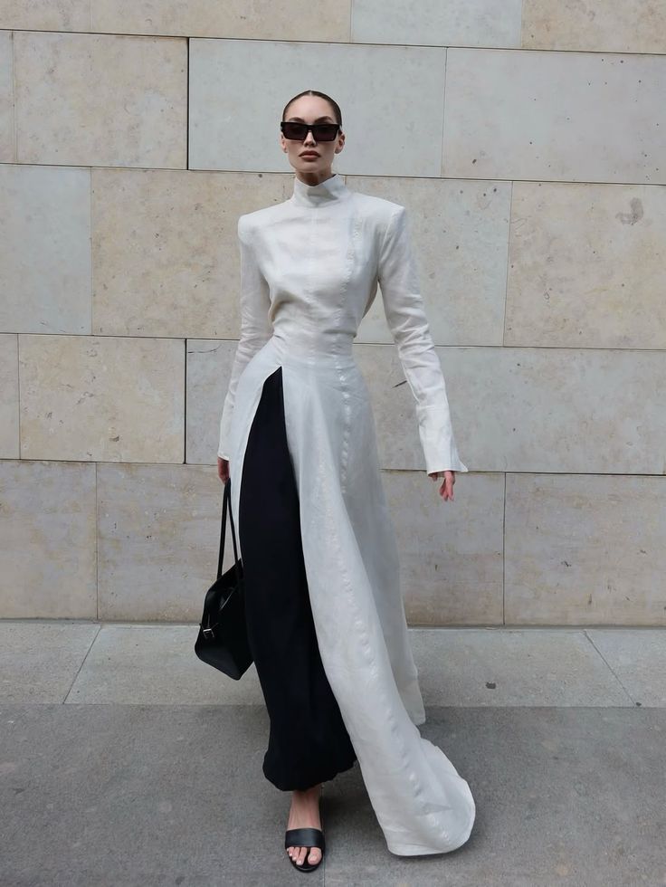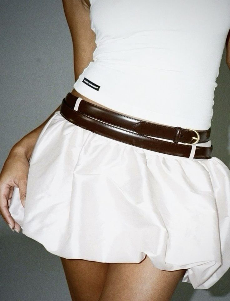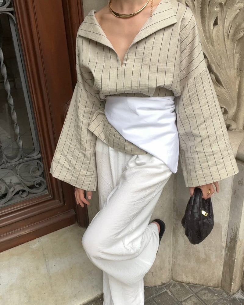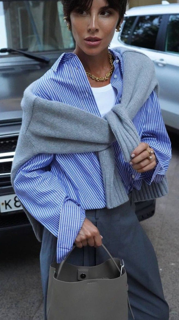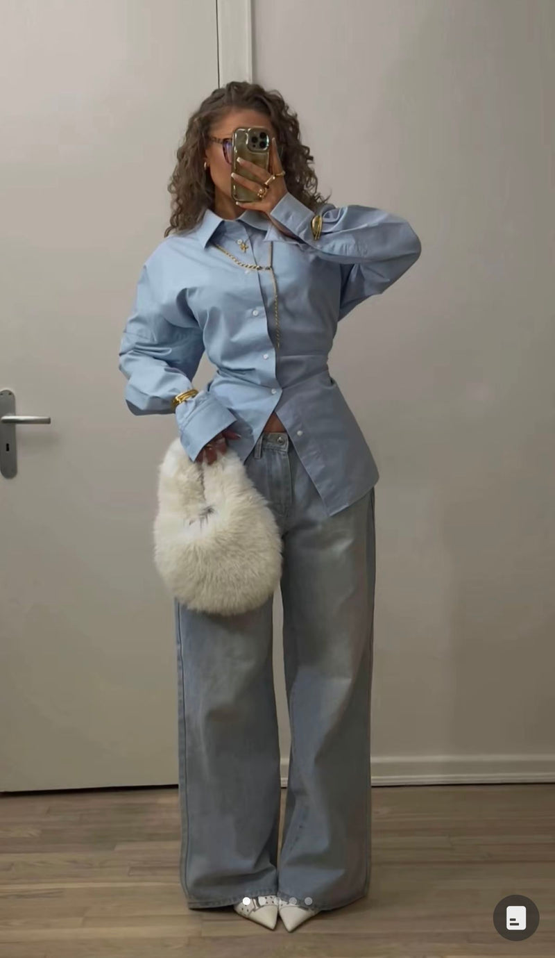 Following the trend of statement belts, the focus on the waistline continues. A feminine silhouette remains important this fall. Blazers, vests, and long-sleeve tops come with a narrowed waistline, creating sharp proportions. Designers also introduce a “barrel” shape: fitted at the top and expanding toward the bottom. Even a simple long-sleeve worn untucked with jeans reflects this waist-emphasizing trend.