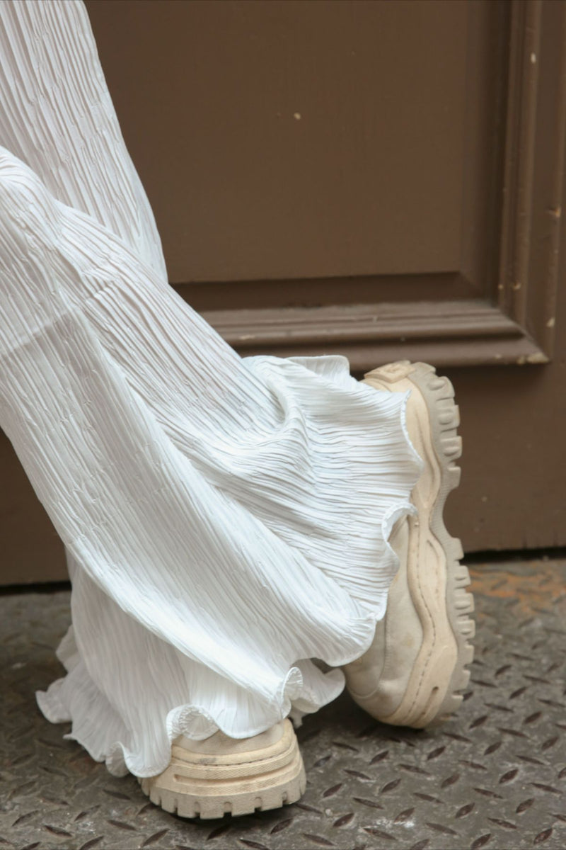 Alongside them, sneakers remain a must-have: compact, flat-soled versions for everyday ease or chunkier, high-platform styles for a more fashion-forward edge.
